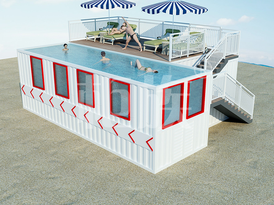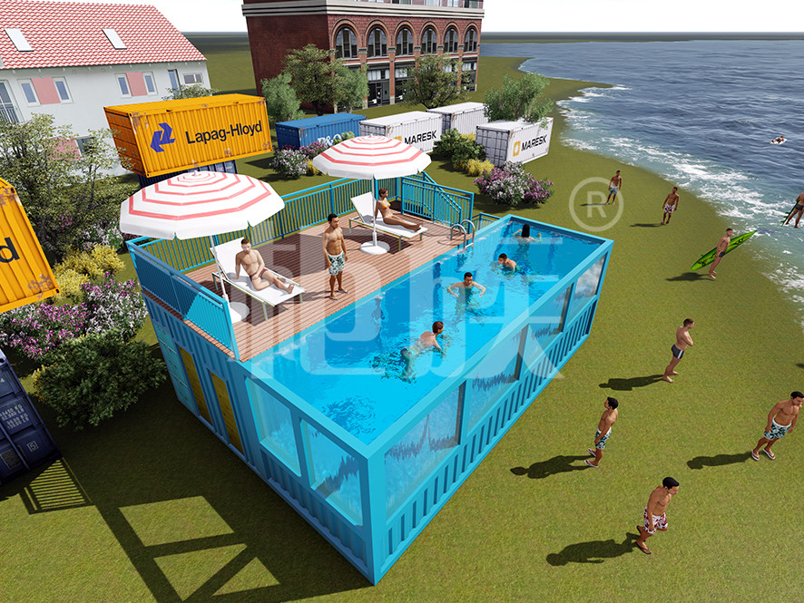 The container swimming pool can be completely prefabricated in the factory, with small area and low cost. It is suitable for courtyard, seaside resort and other public amusement park.