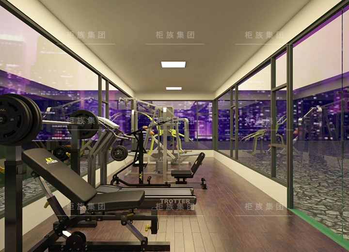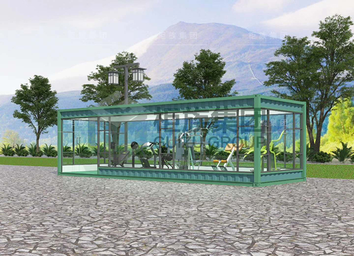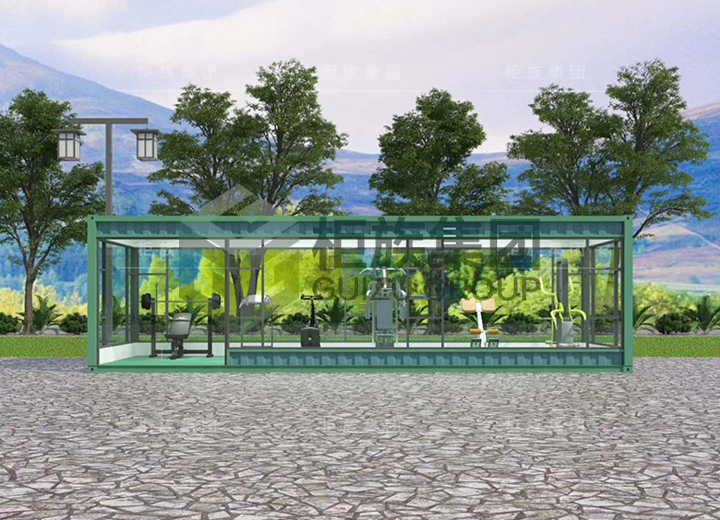 The four walls are designed with floor glass, which can clearly let people see the internal fitness facilities and their use. The appearance is simple and generous, covering a small area. The unique outdoor gymnasium can see the green plants outside through the glass, which makes people feel happy.